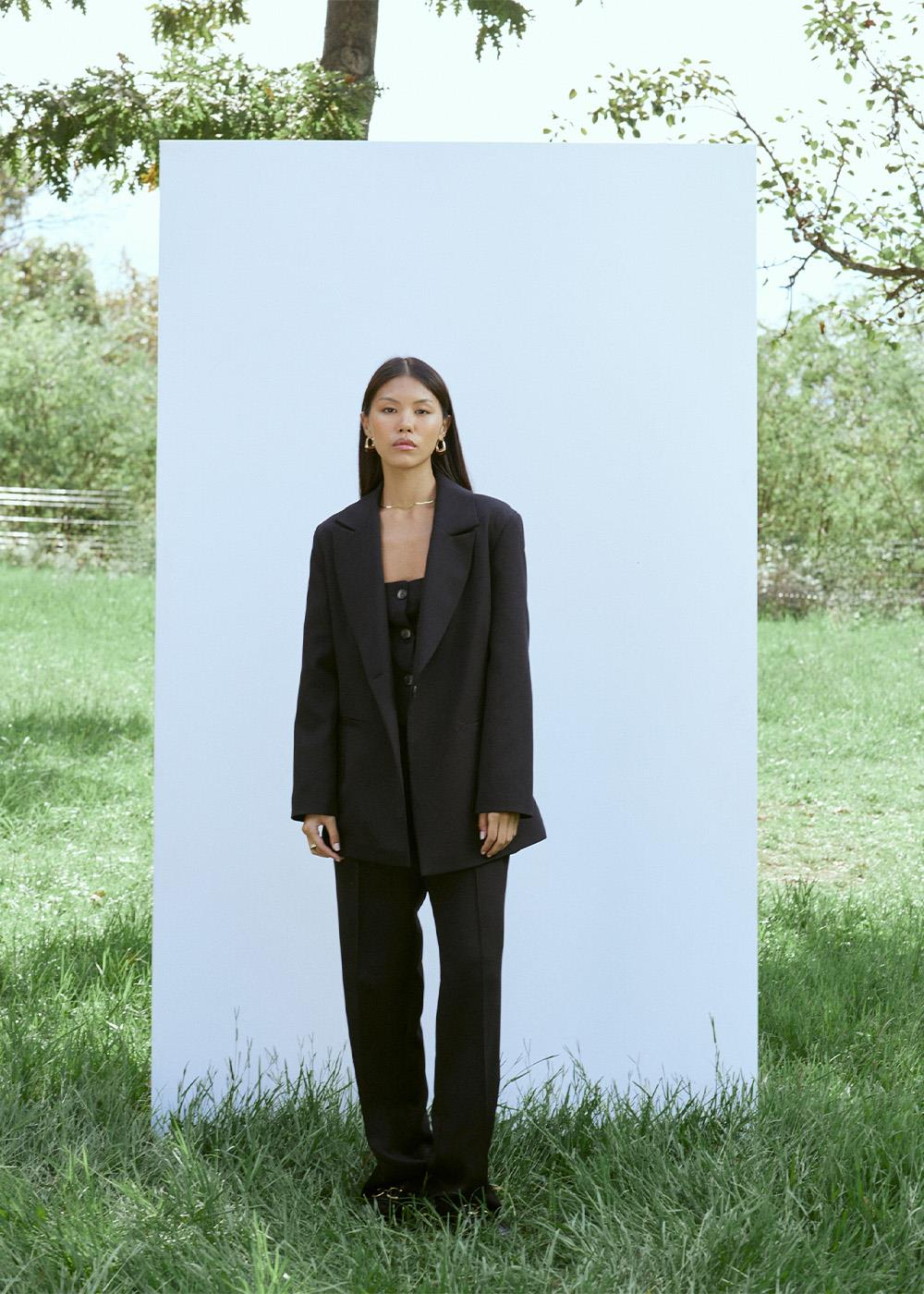 Ceket yakalı, fleto cep detaylı, astarlı, normal kalıp blazer ceket.